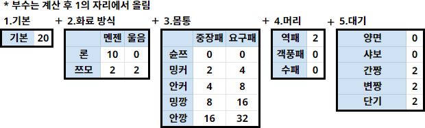- 아래는 대중적 규칙에서 사용하지 않는 점수까지 표기한 것