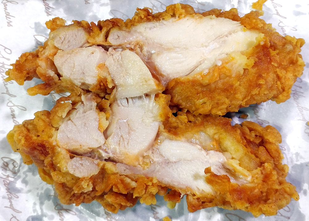 ▲ 튀김옷 안쪽 사진입니다. 닭껍질이 포함되어 기름기로 미끌미끌합니다.