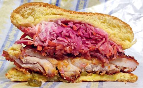 → 적채(적양배추), 당근, 피클을 넣은 닭다리살 치킨버거