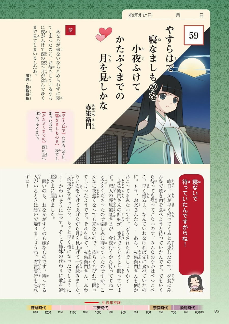 이번에 리뷰할 책은 아사히학생신문사(朝日学生新聞社)에서 출판한 "에피소드로 배우는 백인일수 익힘책(エピソードでおぼえる!百人一首おけいこ帖)"입니다. 백인일수를 공부하려는 소학생(초등학생)을 대상으로 출판된 책이고, 표지에도 적혀 있지만 아사히소학생신문(朝日小学生新聞)에 연재되던 만화를 책으로 엮은 것입니다.